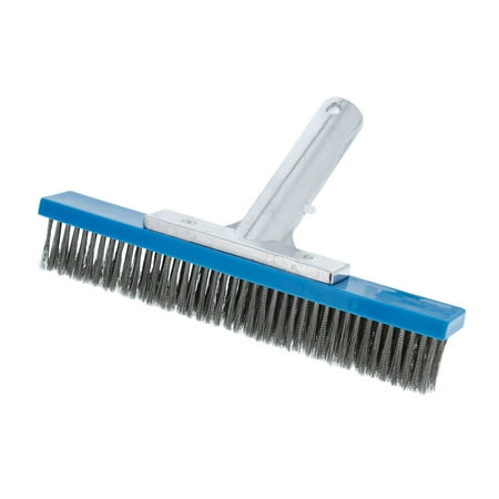 Our deluxe Stainless Steel Bristle Brush for plaster pool walls and floors is the perfect tool for scrubbing away, dirt, stains, and stubborn algae! All-aluminum frame and handle are super strong. Molded Abs plastic holds stainless bristles in place. Includes spring clip and fits all standard pool telescoping poles. ... Fetch Doc
