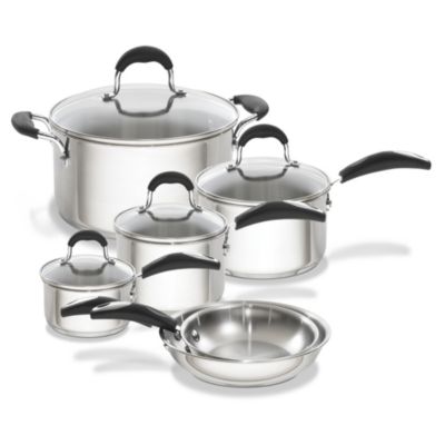 Round out your cookware collection with this impressive ten-piece stainless steel set. These pots and pans have aluminum encapsulated bases that heat quickly and spread evenly for effortless cooking every time. In addition, their tempered glass lids allow you to monitor your food without releasing moisture. ... Fetch Here